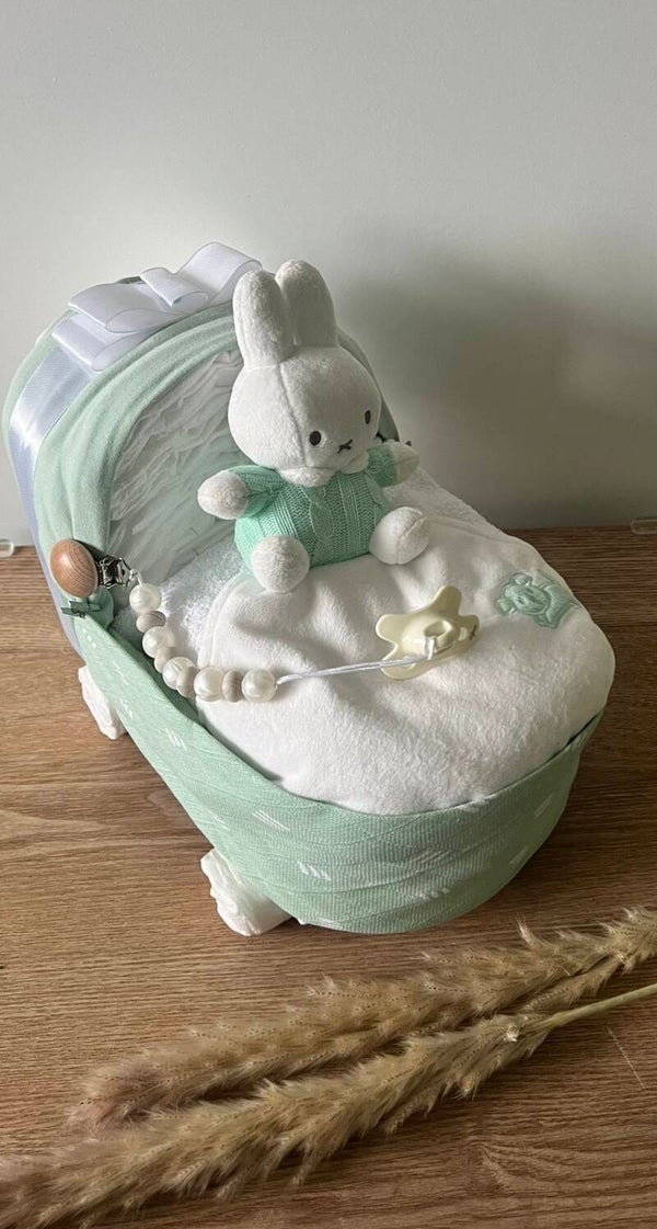 Een luier kinderwagen. Super uniek cadeau om te geven bij een baby shower of geboorte. In deze kinderwagen zit het volgende ingepakt.