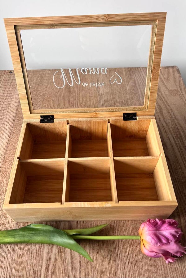 Je favoriete smaakjes thee berg je op in deze moderne bamboe theedoos.